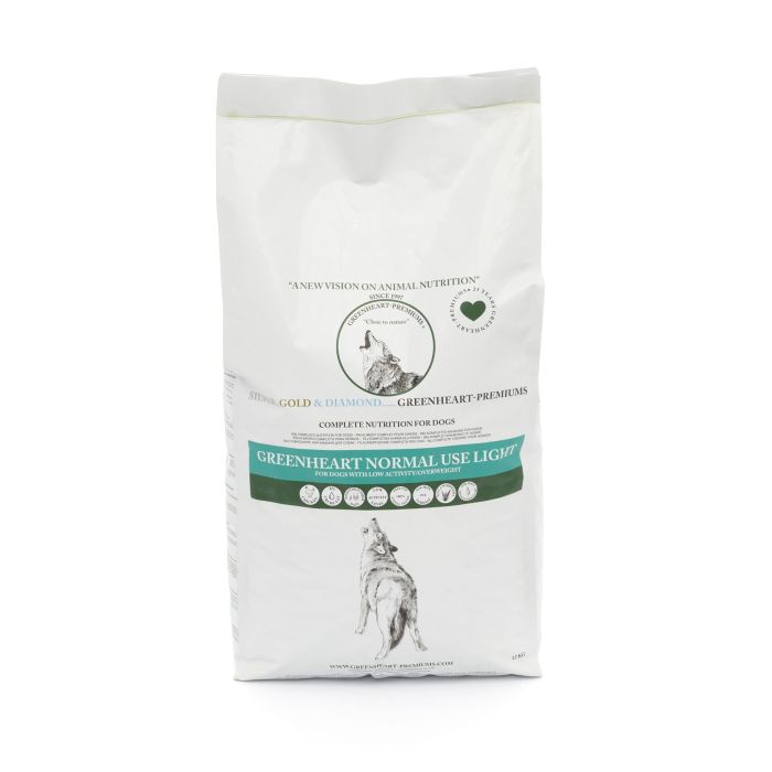 Greenheart Normal Use Light is rijk aan kip. Speciaal voor honden met een gering activiteiten niveau en/of voor honden met overgewicht. Rijk aan verteerbare voedingsvezels uit haver.
