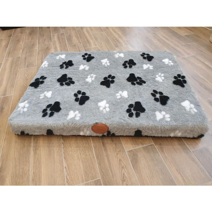 Lovely Nights blokkussen Teddy 2 paw grey . Met een speelse print en het zachte materiaal een geweldig kussen voor uw geliefde hond! Het kussen is gemaakt met een schuimvulling waardoor uw hond van de grond af ligt en lekker zacht. Het materiaal is makkelijk af te nemen met een doek en is voorzien van een ritssluiting waardoor hij ook kan worden uitgewassen. Verkrijgbaar in verschillende kleuren en maten handwas. Laat uw hond genieten van het zachte Lovely Nights blokkussen.