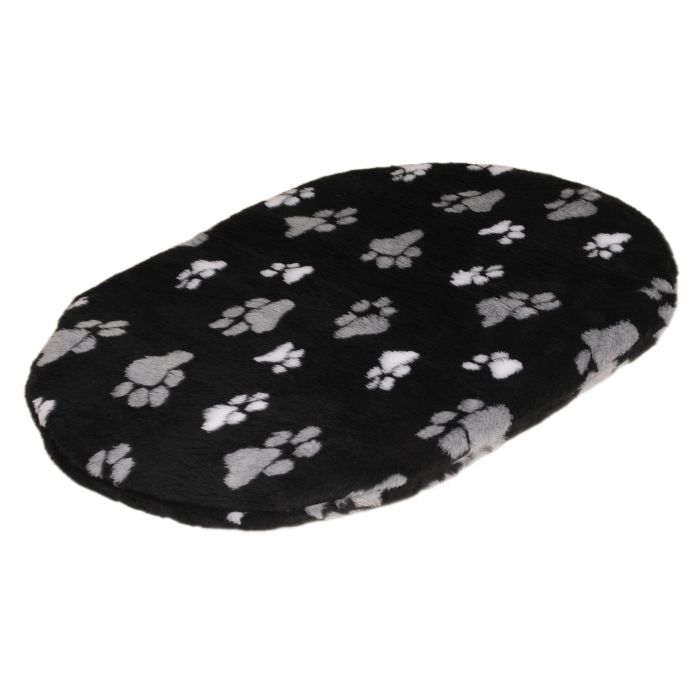 Lovely Nights teddykussen ovaal 2 paw black. Met een speelse print en het zachte materiaal een geweldig kussen voor uw geliefde hond! Het kussen is gemaakt met een schuimvulling waardoor uw hond van de grond af ligt en lekker zacht. Het materiaal is makkelijk af te nemen met een doek en is voorzien van een ritssluiting waardoor hij ook kan worden uitgewassen. Handwas.