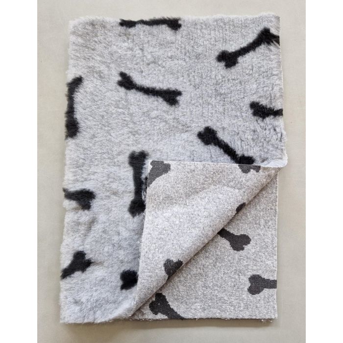 Lovely Nights vetbed bones grey. Dit vetbed heeft een grijze kleur en zwarte botjes Het vetbed is ongebiesd en is geschikt voor gebruik in benches. Gemaakt van Acryl & Polyester.   Verkrijgbaar in diverse maten. Handwas.