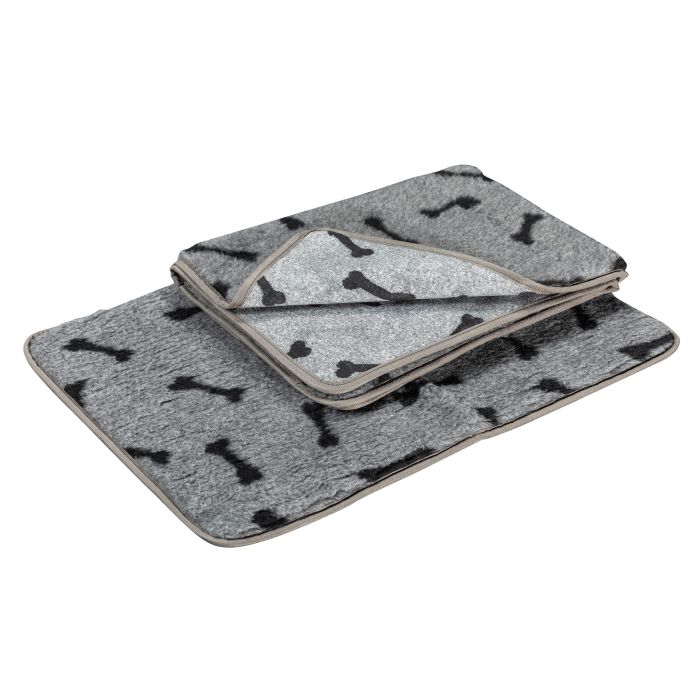 Lovely Nights vetbed bones grey Dit vetbed heeft een grijze kleur met zwarte botjes Het vetbed is afgewerkt met een grijze bies. Gemaakt van Acryl & Polyester.   Verkrijgbaar in diverse maten. Handwas.